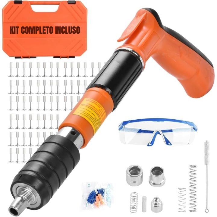 L’offerta include 1 pistola sparachiodi manuale, 100 chiodi, occhiali protettivi, accessori, molle di ricambio, valigetta e manuale d’uso.