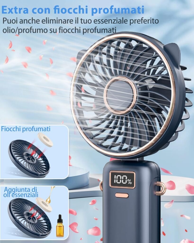 Il ventilatore pieghevole con 5 velocità, aroma profumato e supporto smartphone integrato